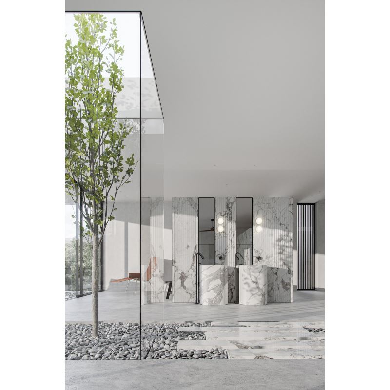 洗漱区的大理石元素运用较多,石材打造的洗手台,墙面的大理石铺贴,无一不是精致简约的表现。