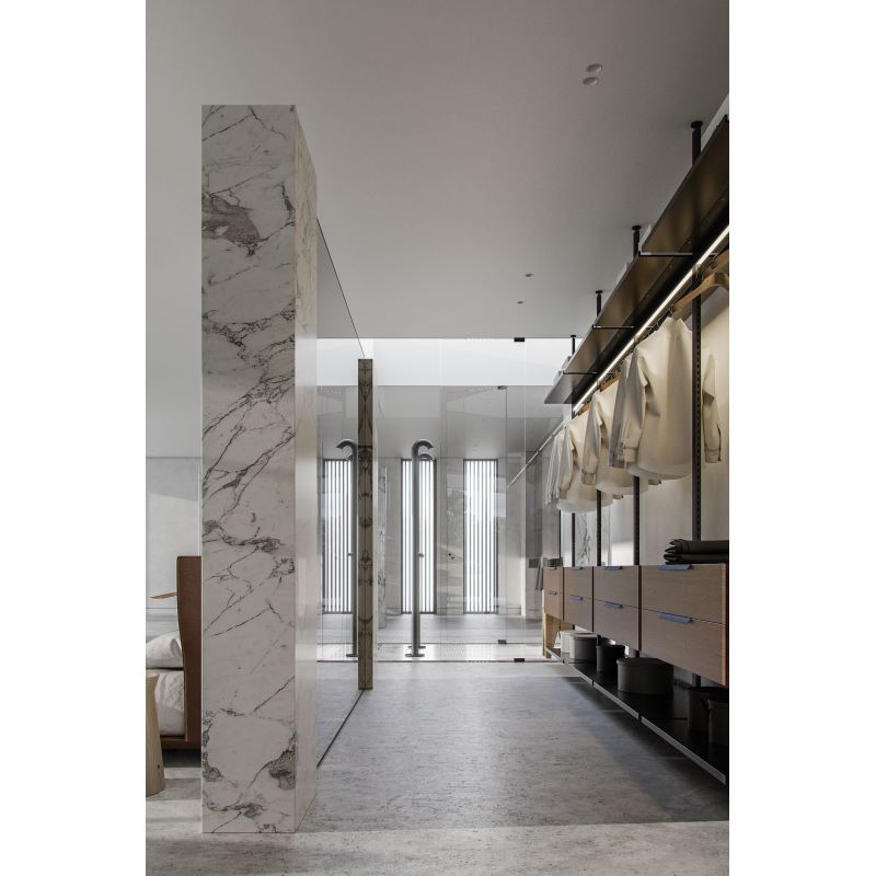 主卧室后的衣帽间设计简约明快,空间通透,无柜门的悬挂衣物区更符合一个现代豪宅的简约时尚感。