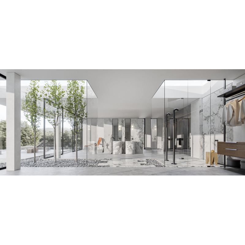 卫生间的空间与外界紧密结合,打破传统的私密性要求,玻璃隔断的区域划分更贴近自然。